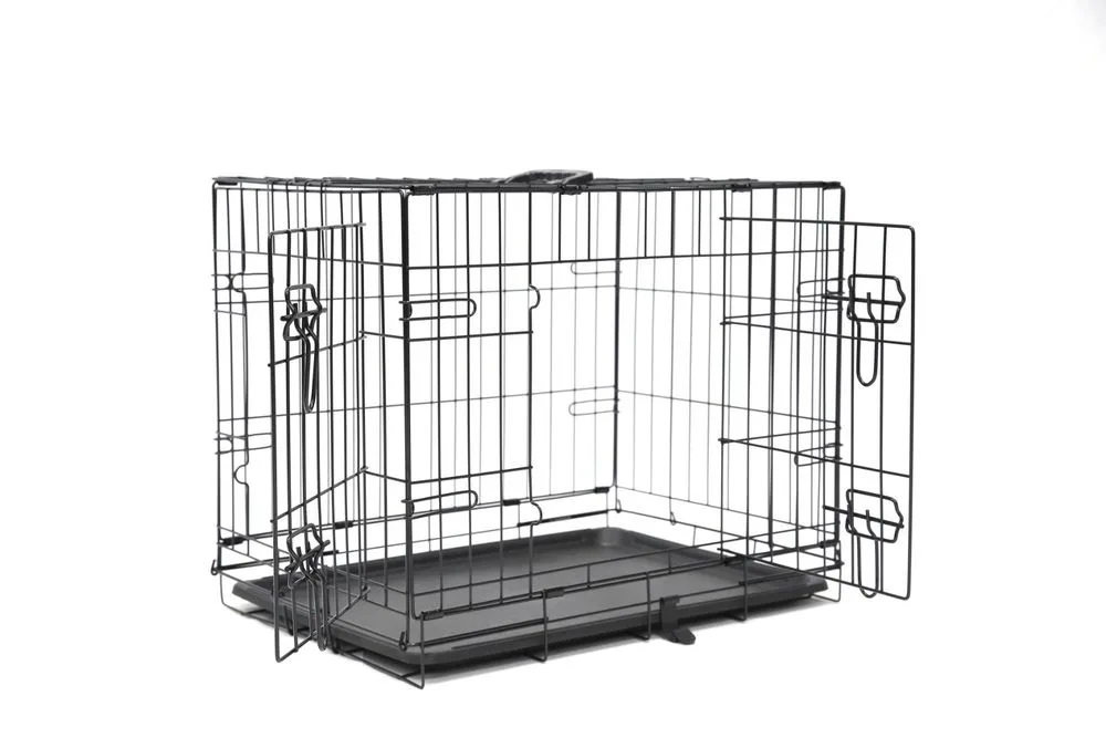 Materiale: metal med epoxy pulverlakering 2 døre med 2 skydelåse hver Sammenfoldelig Med aftageligt plasthåndtag til løft Nem at rengøre takket være plastbakken der kan trækkes ud i bunden Vandret trådtykkelse og ramme trådtykkelse: 3,5 mm Lodret trådtykkelse: S – L: 2 mm / XL – XXL: 2,5 mm Str: L 92 x 57 x 64 cm