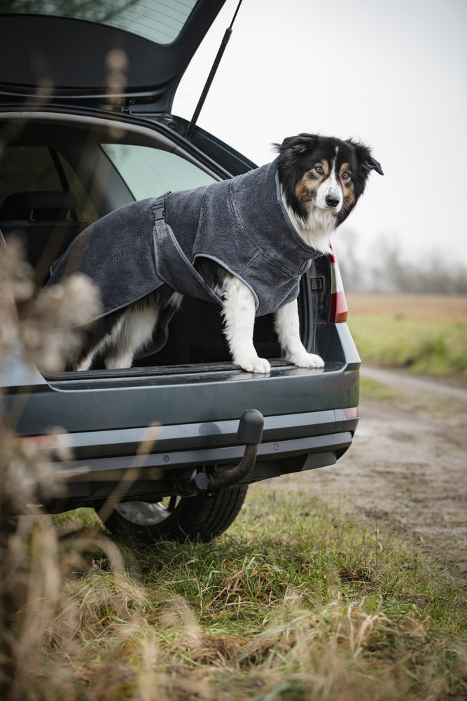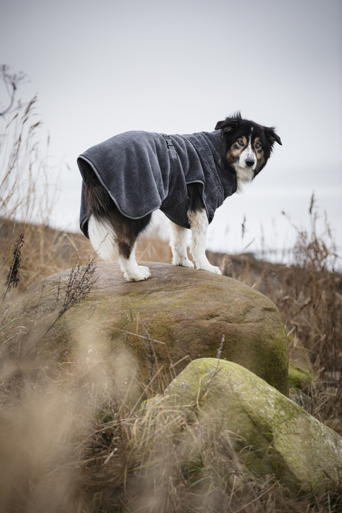 Yderst absorberende hundetæppe med en blød og lækker tekstur. En foldbar krave med høj hals gør det tilpasningsvenligt til hunde med kortere og længere halse. Et justerbart mavebælte giver maksimal dækning og kropstørring. Nyttigt for de langhårede racer.