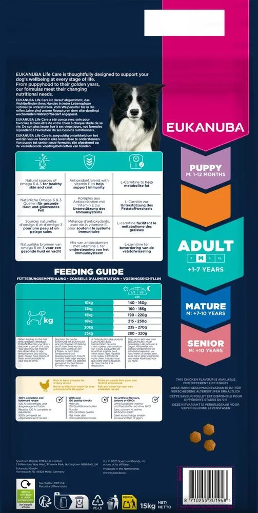 Foderet er 100% komplet og afbalanceret. Velsammensat ernæring til mellemstore voksne hunde for at hjælpe til en sund krop og livslang velvære.