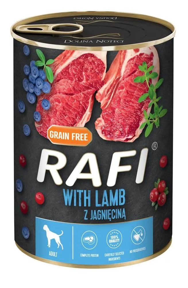 Ingredienser: komplet protein og umættede fedtsyrer, dvs. komponenter der er essentielle for korrekt vækst og udvikling på ethvert livsstadium hos et kæledyr. I voksen-serien – hørfrøolie, der er en fremragende kilde til omega3 og omega-6 fedtsyrer samt E-vitamin. I Junior-serien – lakseolie, der understøtter immunforsvaret. Frugt – tranebær og nordamerikansk blåbær med stærke antioxidanter. Timian støtter fordøjelsen og smager skønt! Tilsætningsstoffer: kød og animalske derivater 65% (kalkun, lam eller vildt 4%),frugt (blåbær 2%, tranebær 2%), mineraler, olier og fedtstoffer (hørfrøolie ,2%), tørret timian 0,01%. Analyse: råprotein – 9%, råfedt – 7%, råaske – 2,5%, råfibre – 0,8%, fugtighed – 78%, calcium – 0,3%, fosfor – 0,25%.