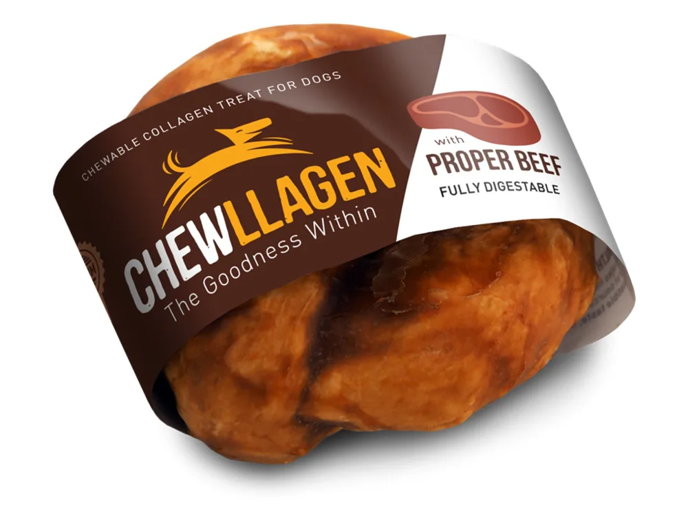 Chewllagen er en hundegodbid fremstillet af kollagen udvundet af huden fra sydamerikansk græsfodret kvæg.