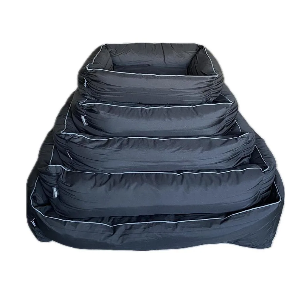 Vandafvisende og slidstærk hundeseng! Forkæl din hund med en hundeseng med stof lavet af 100% polyester, der tilbyder både komfort og holdbarhed. Sengen har en special anti-slip bund, hvilket sikrer, at den forbliver sikkert på sin plads. Produktegenskaber: Materiale: 100% vandafvisende og slidstærk polyester Fyld: Bund og sider fyldt med vaskbart silikone-fiber for optimal komfort Certificering: Øko-Tex certificeret for øget sikkerhed og kvalitet Vaskbar: Betrækket kan lynes af og vaskes ved 30 grader, ligesom fyldet også kan vaskes. Størrelser: Fås i 5 størrelser Farver: Tilgængelig i mørkegrå og sort Giv din hund det bedste, med en seng der kombinerer stil og funktionalitet.