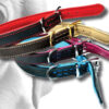 Kan bestilles i de farvede, denne serie er brun og natur farvet Alle Halsbånd måles længden fra spændet til det andet hul. Fladt halsbånd i blødt oliebehandlet kvalitets læder, med håndsyet afslutning.