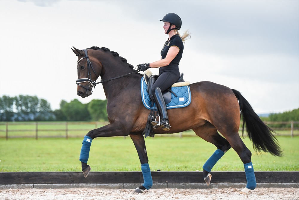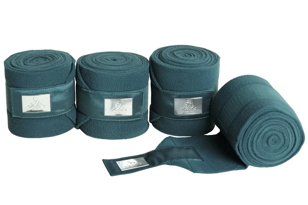 Green Jade Gem Collection, fleece bandages. From the fantastic Gem collection we present Green Jade. A beautiful, calming greenish colour that looks amazing with the metallic shining fabric at velcro closures. The meaning of Green Jade Gem stone is Serenity, Wisdom & Power . And what’s not to like. The velcro on these bandages are made of the same metallic shining fabric as the saddle pad, and they match perfect. * One size. The bandages are 3,5m long so you can cut the end of, if you need shorter bandages * Set with 4 pcs. fleece bandages. * Classic and stylish SD logo in silver. * Mashinewash on 30 degrees recommended. .