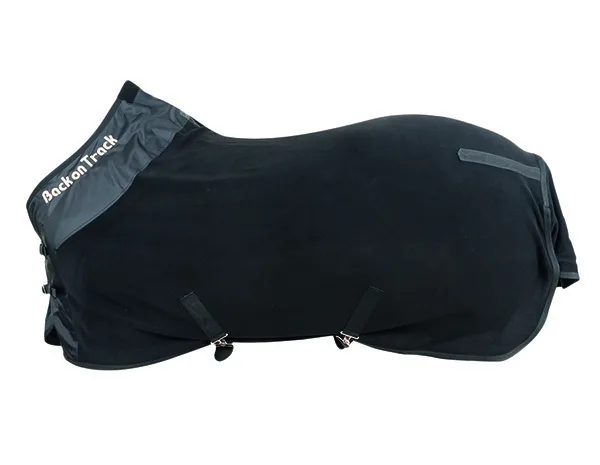 Dækkenet kan med fordel anvendes før træning/konkurrence som en slags opvarmning af musklerne og efter for at forhindre stive og ømme muskler. Når man anvender et helt dækken får man glæde af Back on Track-effekten på både bringe, ryg, bagpart og lårets muskler. Dækkenets inderste stoflag er af polypropylen med ismeltet keramik og det yderste lag af polyester. For at mindske risikoen for irritation og at dækkenet “strækker” sig er dækkenet forstærket rundt om halsen med et polyester stof. Fleece dækkenet har teddyfoer ved manken. Dækkenet har dobbelte bringe spænder og krydsgjord. Der er en stor halebeskyttelse med halerem og ringe til benstropper. OBS. Der er ikke ringe på dækkenet til halsen. Nakke til fleecedækken Der findes et løs nakke-/hals til fleecedækknet for at få Back on Track-effekten også på hals og nakke muskler. Nakken består af den samme tekstil som fleecedækkenet. Nakken fastgøres til dækkenet med en karabinhage rundt om grimen ved nakken med 3 karabinhager i dækkenet. Under halsen lukkes den med 3 velcro bånd.