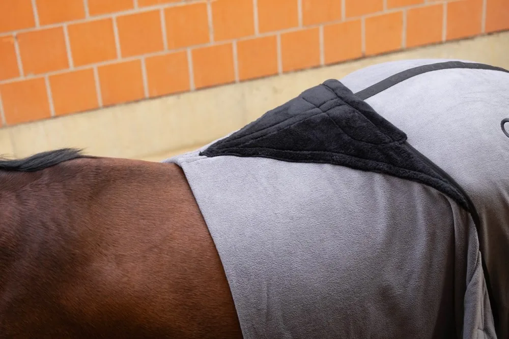 Takket være dækkenets åndbare egenskaber transporteres sveden effektivt væk, så hesten altid forbliver tør. Tæppet er udstyret med et praktisk brystspænde, en halestrop og justerbare og aftagelige krydsstropper for at sikre optimal støtte.
