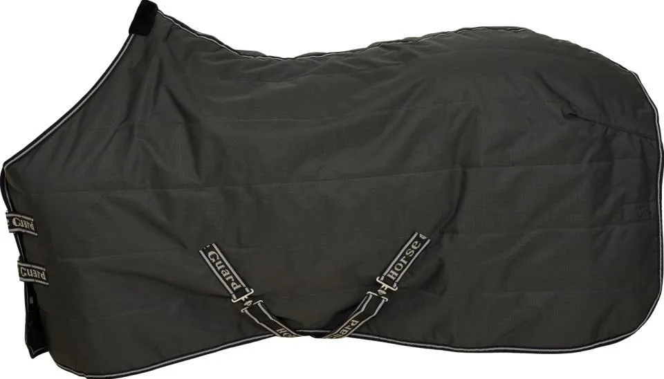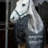 Stabilt tæppe med 300 g polyfyldning Webbing med kontraststribe og metallisk stribe + Horse Guard jacquard, Sølvmetallisk hardware Blød falsk pels-nakkepude og justerbare dobbelte forreste spændelukninger med hurtig snap-lukning Aftagelig og justerbar benrem 100% polyester 210D