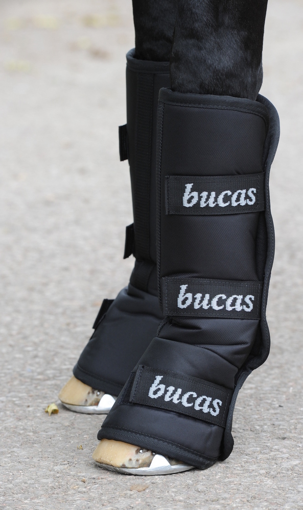 Bucas 3/4 boots er lavet af hårdt ydre stof og en stay-dry indvendig foring. Polstret polstring, så de vil følge hestens kontur. De er kortere end 2000 boots og har tre stropper på både for- og bag og er gode til heste, der ikke kan lide de normale lange travelboots.