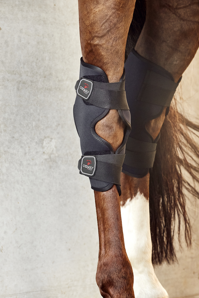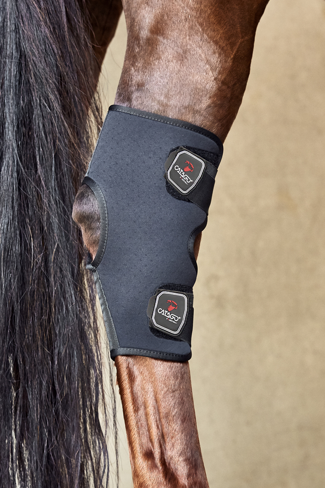 CATAGO FIR-Tech hasegamachen yder god beskyttelse for hestens haser idet den er lavet af stødabsorberende neopren og foret med det velkendte FIR-Tech materiale, som har indvævede keramiske partikler, der reflekterer hestens egen kropsvarme, hvilket gør, at blodcirkulationen øges. Dette bevirker, at restitutions perioder mindskes og skader forebygges.