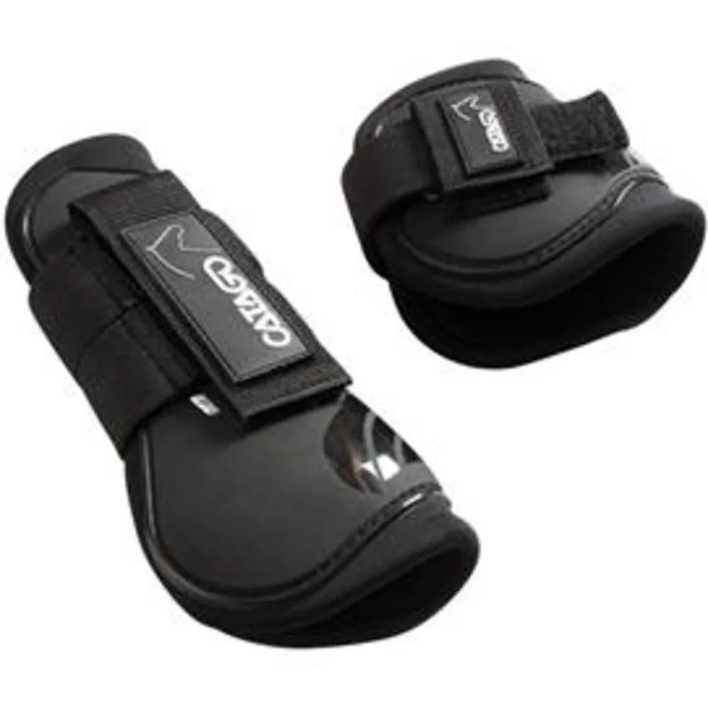Sæt med åben forbensgamacher og bagbensgamacher i kraftig PVC med velcrolukning og blød neopren foring.