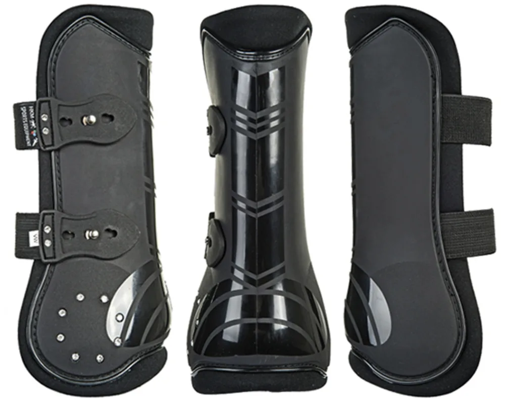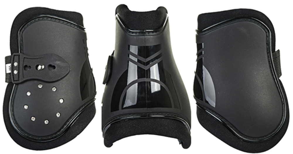 Produktbeskrivelse: – slidstærk – stødabsorberende – beskytter hestens ben – sæt af 4 – Knaplukning – med blødt inderfor – anatomisk tilpasset form – besat med fine sten – anatomisk tilpassede stryglapper i plast – formstabil – maskinvaskbar ved 30 grader .