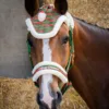 Bring din hest i ultimativ julestemning med dette festlige grimesæt i et muntert juledesign.