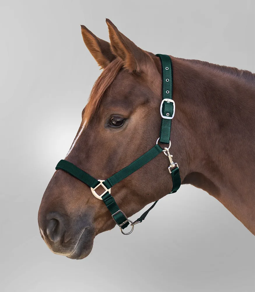 Nylon grime med blød inderside på nakke og næse. Kraftige spænder.