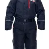 Dragten har 3 udvendige lommer til telefonen og 1 indvendig lomme. Ærme- og benåbningerne kan justeres, og lynlåse langs benene gør det nemt at tage dragten af og på.