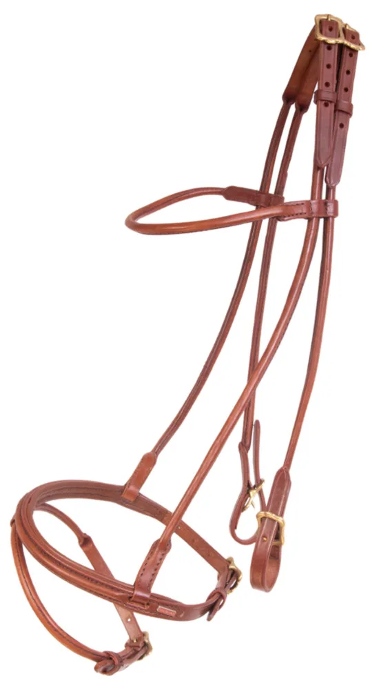 Elegant rundsyet hovedtøj i meget god kvalitet. Komplet hovedtøj med kombineret næsebånd. Hovedtøjet er sammenbygget i en del.Med messing spænder og uden tøjle