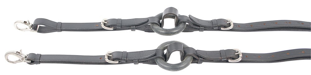 Indspøndings tøjler i læder med gummi ring.