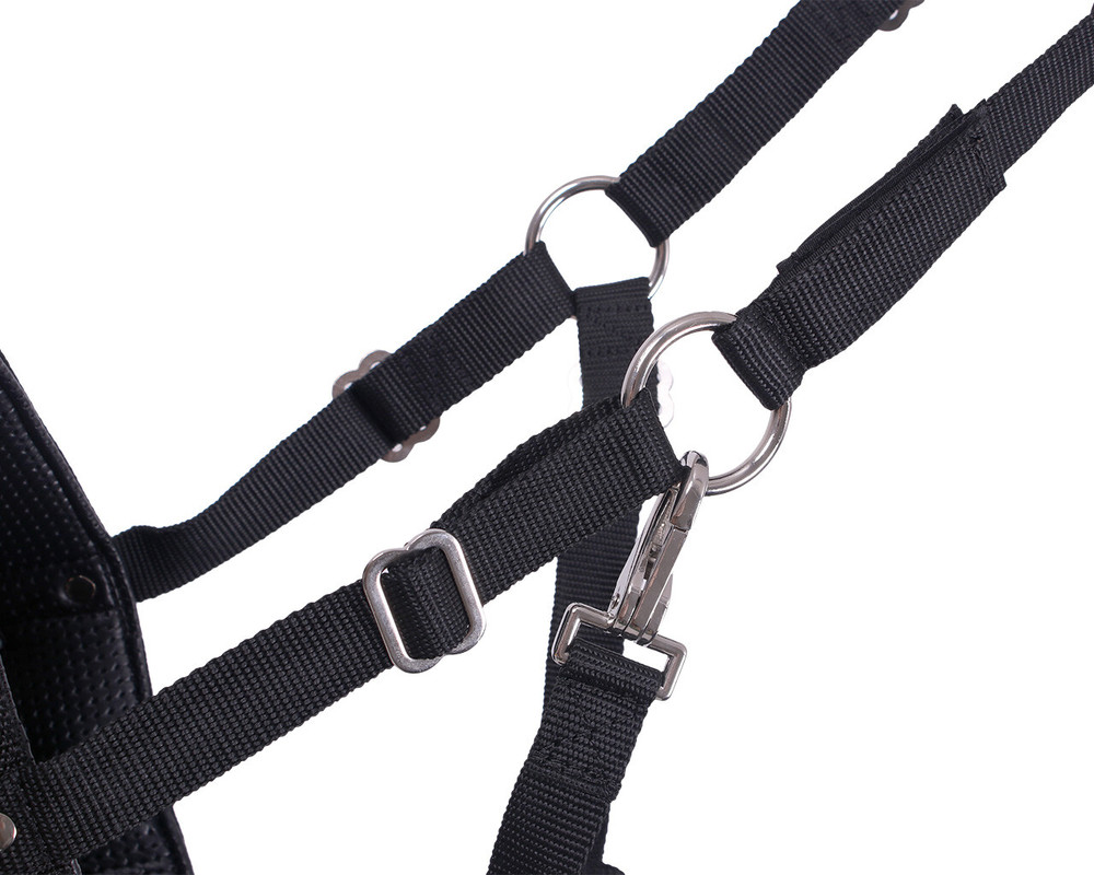 Med en velcrobåndslukning ved nakkestykket, der åbnes i tilfælde af højt tryk, for at sikre, at hesten ikke sætter sig fast