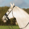Gør din trense til et blikfang! Denne sorte pude er dekoreret med en række rhinsten over næsebåndet. Puden kan placeres under næsebåndet ved hagen og forhindrer irritation, gnidninger og trykpunkter.