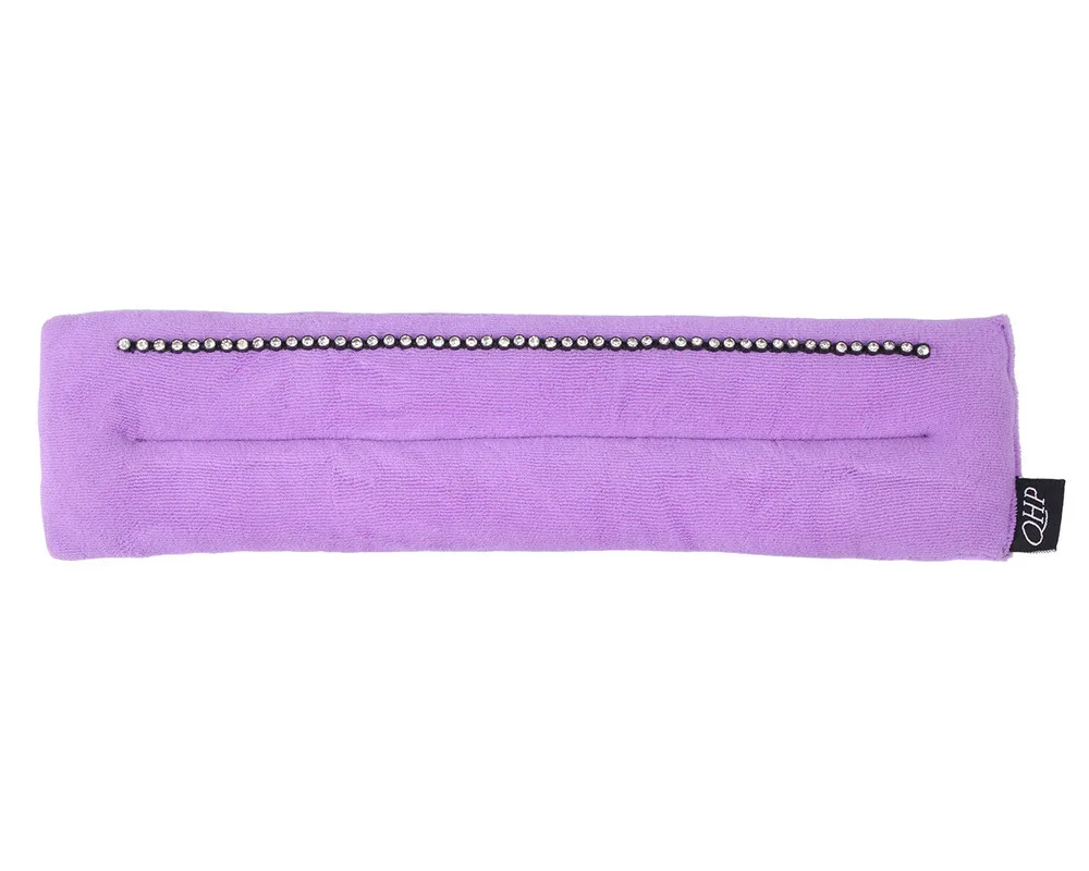 Gør din trense til et blikfang! Denne sorte pude er dekoreret med en række rhinsten over næsebåndet. Puden kan placeres oven på næsen under næsebåndet og forhindrer irritation, gnidninger og trykpunkter. Specifikationer Stoffets sammensætning: 100% polyester Lavet af blød frotté Forebygger irritation, gnidninger og trykpunkter Kan placeres oven på næsen, under næsebåndet Skal bruges i kombination med næsebåndets kæbe pad Kan også bruges som nakkestykke pude Længde og bredde: – Pony: 24 x 5,5 cm – Cob: 27 x 6 cm – Fuld: 30 x 7 cm OBS Farven er mørk lilla !!