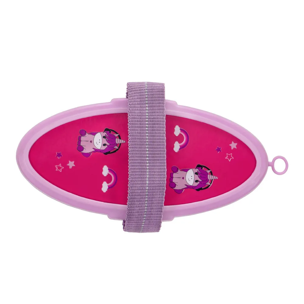 Blød børste med muntert look på grund af de farvede bløde børster og enhjørningeprint. Børsten er en del af Sterrin-kollektionen. Specifikationer Materiale børster: polypropylen Materiale rem: nylon Hård del er lavet af PP-plast med et PVC-dæksel Blød børste til at fjerne løst snavs Har et nylonbånd for et godt greb Med farvede børster Med muntert print En del af Sterrin-samlingen