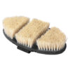 ?På grund af de stabile naturlige børster er den perfekt til at fjerne fast snavs som mudder på hele hesten. ?