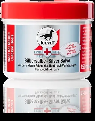 Særlig pleje af huden. Silver Salve indeholder rent sølv, som ved hjælp af det forstørrede overfladeareal fører til en kontinuerlig frigivelse af sølvioner. Dette gør det muligt for sølvets antiseptiske virkning at udfolde sig. Infektioner aftager, så huden kan berolige og regenerere. Planteolier af høj kvalitet giver tør, revnet hud fugt, hvilket gør den glat. Kan bruges til at støtte pastern mod fugt og bakterier. Silver Salve kan bruges i kombination med leovet Zinkoxidspray.