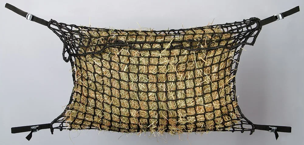 Da haynet er lavet af fint net, sparer det op til 30% foder. Med 4 løkker til fastgørelse.