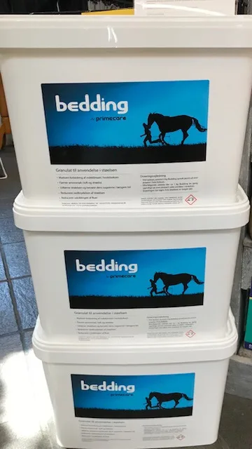 Granulat til anvendelse i strøelse. Markant forbedring af indeklimaet. Fjerner amoniak i luft og strøelse. Udtørrer strøelse og bevarer dens sugeevne i længere tid. Reducerer nedbrydelsen af strøelse. Reducerer udviklingen af fluer. Bedding fra Primecare bygger på ny teknolologi, hvor der sker en aktiv nedbrydning af ammoniak, svovlbrinter og væske fra strøelsen i hestebokse. Herved opnås der et sundere indeklima i boksen, samt en meget kraftig udtørring af strøelsen. Amoniak og svovlbrinter er meget skadelige for både mennesker og dyr, og forbindes med en øget risiko for luftvejsinfektioner. Desuden nedbryder ammoniak og væske strøelsen, således holdbarheden af denne mindskes tydeligt. Bedding Primecare virker via en aktiv kemisk nedbrydningsproces, i modsætning til gængse pulvermidler til bokse på markedet, som kun absorberer en mindre mængde væske, som frigives igen. Bedding fra Primecare består udelukkende af uorganiske mineraler. Doserings Vejledning Ved opstart, anvend 4 kg Bedding spredt jævnt ud over strøelse i hele boksen( op til 16m2) Efterfølgende udstrøes ca 1 kg Bedding en gang ugentligt, ud over primært våde områder. Doseringen kan øges, hvis strøelsen er meget våd.