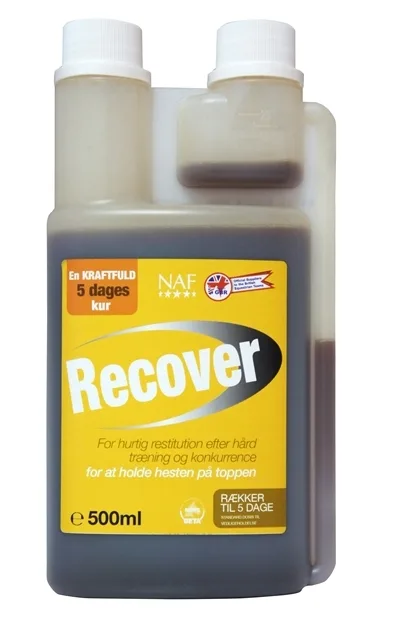 Recover er et fantastisk produkt til den aktive hest i hårdt arbejde. Produktet er designet til anvendelse som en 5-dages kur efter fx. stævne. Det er en blanding af anti-oxidanter, MSM og Magnesium – og produktet hjælper hesten med at restituere hurtigere, får mælkesyre væk fra musklerne og genopbygger styrken. Mange ryttere har allerede haft succes med at anvende produktet på dag 2/3 af et længere stævne, og oplever at hesten får fornyet kraft. 500 ml = 5 dages kur.