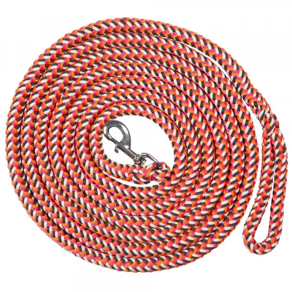 Farverige, praktiske flettede reb af nylon – inkl. håndrem og karabinhage. Dette longereb er ideel til , gang eller jordarbejde. Matcher PFIFF hals ring, rund flettet. Materiale: 100% polypropylen Tykkelse: 1,8 cm