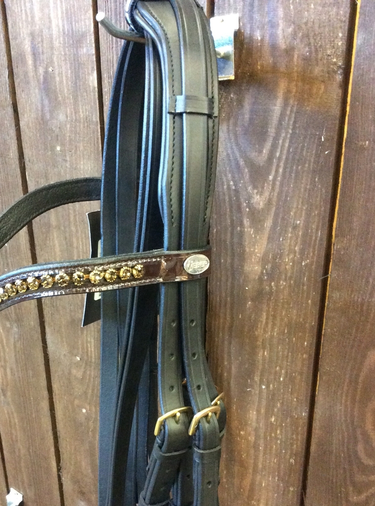 Flot kandar i sort med brun lak pande og næsebånd, gyldne sten