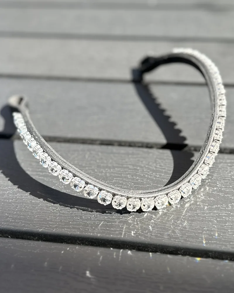 Pandebåndet er udsmykket med meget flotte krystal hjerter.