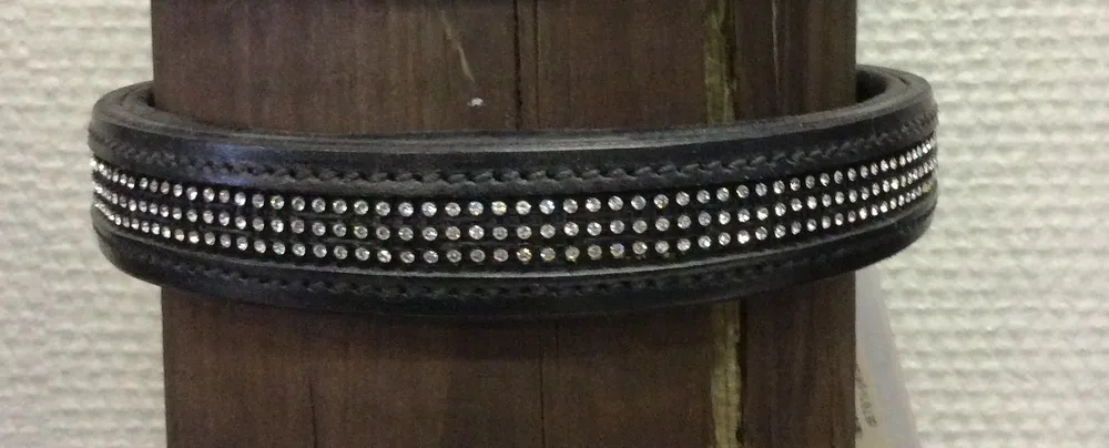 Pandebånd med blød foring og 3 rækker små crystal farvede sten.