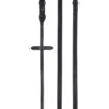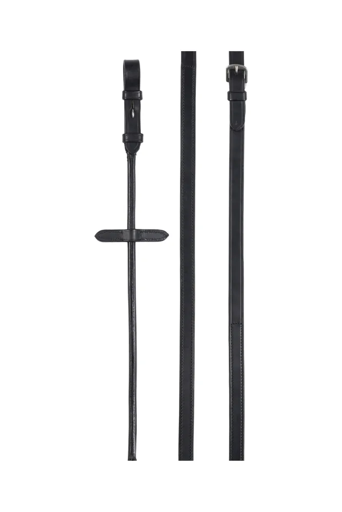 Rundsyede super-grip tøjler lavet af en kombination af læder og gummi. Gummibelagt side giver ekstra grebsstyrke. Enkel finish, der passer til en række andre trenser og kandarer. Franske hager til fastgørelse i biddet. Læderstoppere til brug med en martingal.