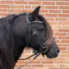 Shetlands trense i en lækker kvalitet med ergonomisk nakkestykke og næsebånd. Næsebåndet er med tilbagetræk.