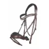 – slidstærkt kvalitetslæder – kraftige, sølvfarvede beslag – tilbagetræk – pandebånd med syntetiske diamanter – næserem og pandebånd med blød polstring – tøjle i vævet bånd med ekstra kort stopafstand – spænde ved næserem blød polstret – nakkerem blødt polstered – bred nakkerem med udskæring til ør – næserems bredde ca. 4 cm – uden bid