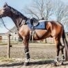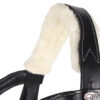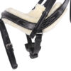 Anatomisk formet trense med et blødt imiteret pelsfor. Foret forhindrer irritation og er derfor perfekt til heste med en følsom hud. De hvide og dekorative syninger giver et luksuriøst look til trensen. Med blød polstring ved lukningen af næsebåndet.