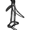 Waldhausen X-Line trenser New Shape II – Kombination af flash næsebånd og drop næsebånd – Nakkestykke med ekstra ørefrihed og blød polstring – Buet pandebånd med elegant rhinstenskæde i midten – Næsebånd og nakkestykke blødt polstret – Sidefastgørelse af flashremmen ved hjælp af to ringe – Forhindrer øget tryk på næsebenet, muliggør en mere fleksibel knækning, mere næseborsfrihed – Beslag i rustfrit stål – 19 mm webbingtøjler Høj kvalitet og elegant – X-line-kollektionen fra Waldhausen 185 års ekspertise inden for fremstilling af læder sikrer topkvalitet og perfekt forarbejdning. Til vores X-line-kollektion bruges kun det fineste læder, fremstillet af dygtige sadelmagere,