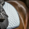 Mesh-sadelunderlag i glitter for et strejf af gnistre. Kant i skinnende satin 3D-mesh-rygsøjle til ventilation Dekoreret med farvet for at matche rebrør og rhinstensbeskæring langs kanten Svedtransporterende, åndbart Coolmax-for 3 rum gjordrem til dressurform og 1 rum gjordrem med velcro til alle formål Vævet tone-logo-mærke på gjordremmen