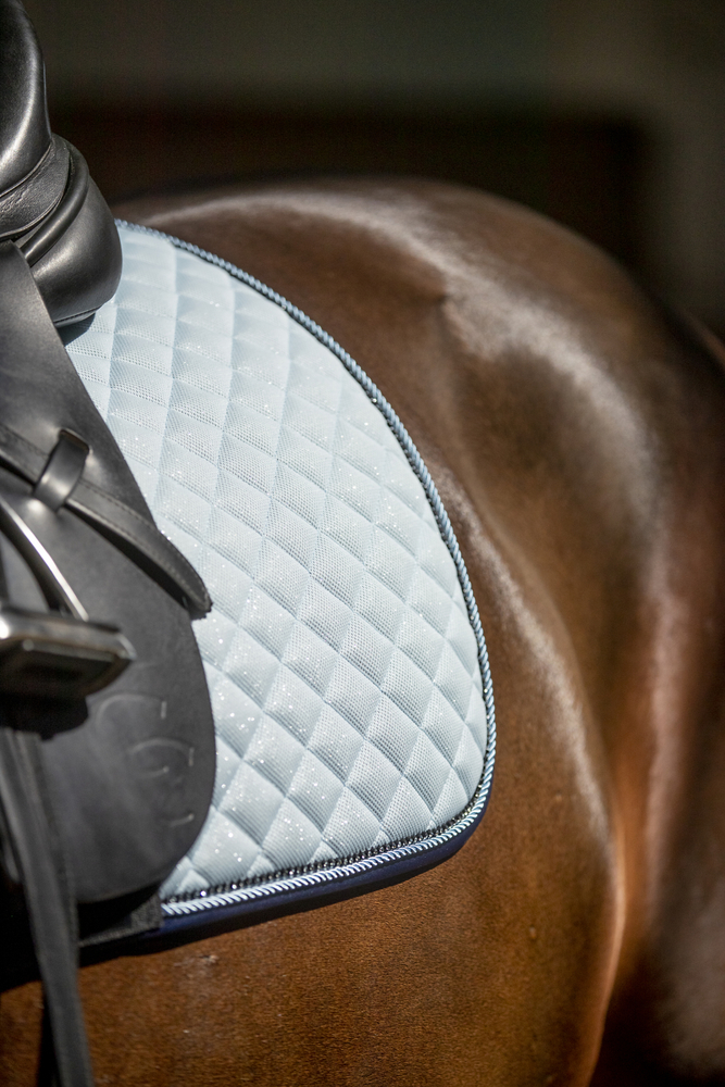Mesh-sadelunderlag i glitter for et strejf af gnistre. Kant i skinnende satin