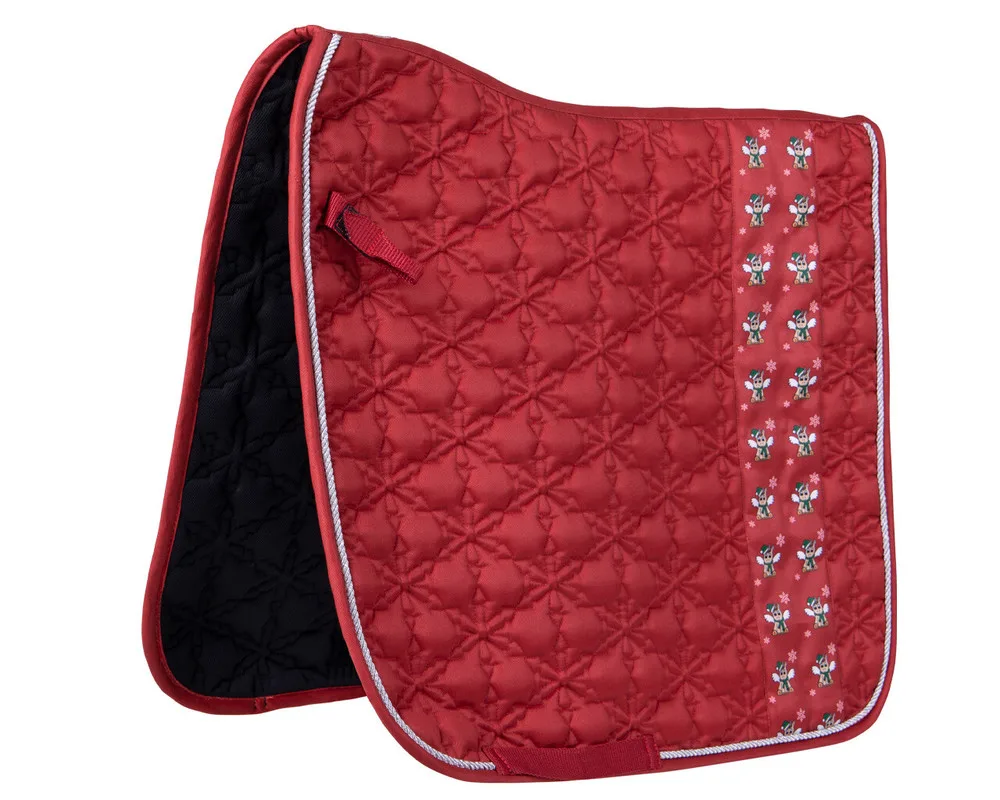 Stofsammensætning udvendig: 100% polyester For for stofsammensætning: 100% polyesternet Julesadelunderlag med juleenhjørningeprint Syning i dekorativt mønster af julestjerner Udstyret med absorberende meshfor Stofsammensætning udvendig: 100% polyester For for stofsammensætning: 100% polyesternet
