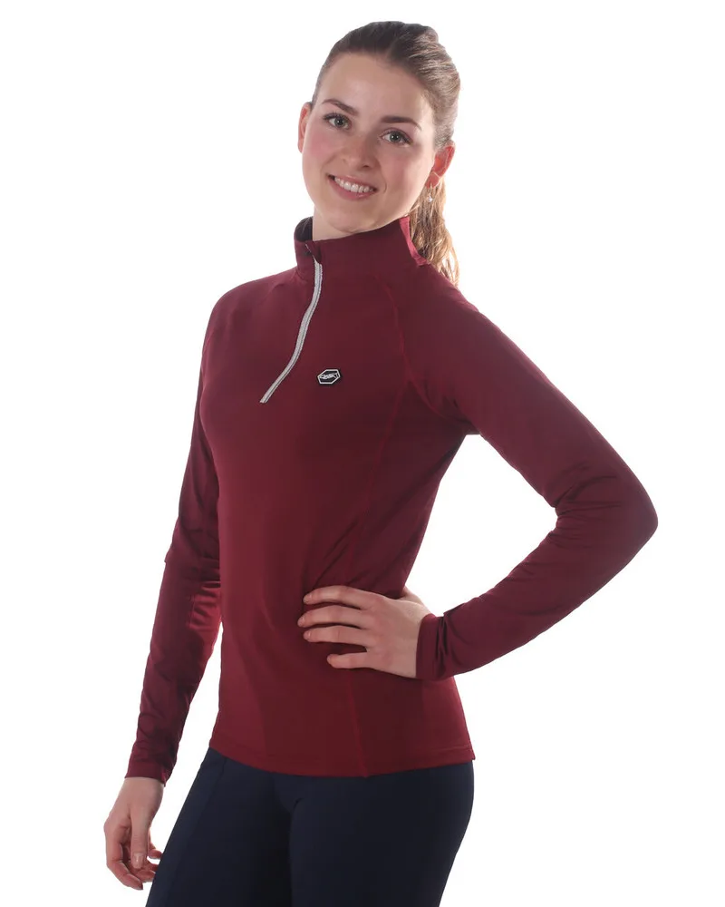 Basislag sportstrøje lavet af smidigt og behageligt stof Perfekt til træning eller konkurrence på grund af det hurtigtørrende stof Udstyret med en sølvfarvet 1/4 lynlås foran “Equestian Sports” tekstprint bag lynlåsen Kan maskinvaskes ved 30 grader. Brug helst ikke skyllemiddel og ikke tørretumbler Stofkvalitet: 90% polyester, 10% elastan
