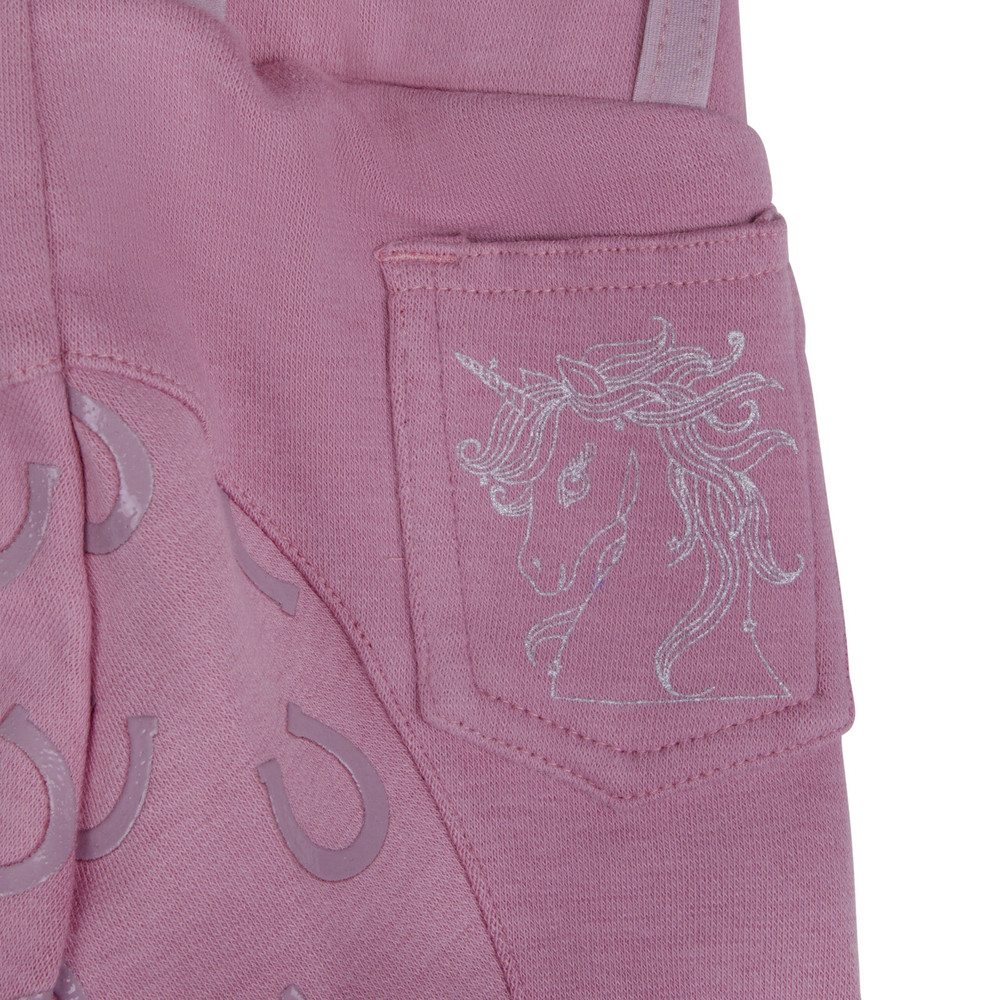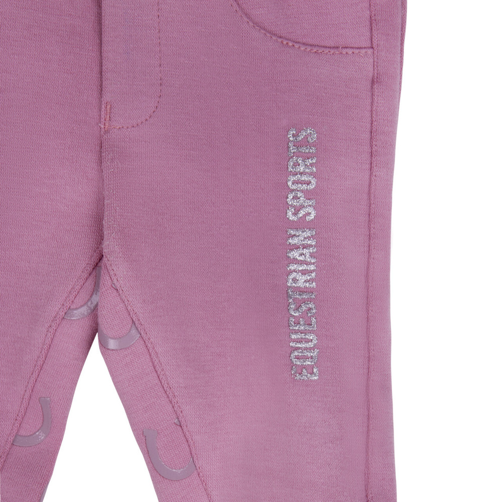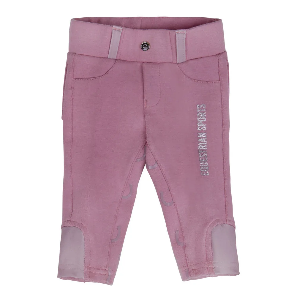 Hvor sødt! Disse ridebukser Bobby til de små iblandt os. Disse yndige ridebukser har teksten “Equestrian Sports” øverst på venstre ben. Bukserne har et fuldt grebsmønster i form af hestesko.