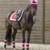 Juleklokker bringer julestemningen til live. Sæt med to pelsforinger, hver har fire klokker. Let at fastgøre til en halter eller tøjler med velcro-lukningen. Specifikationer Materiale: polyester Materialeklokker: zinklegering Sæt af to halterpelsforinger Foring af imitationspels Stribe af rødt stof på toppen Fire klokkeklang, der ringer Afslut dit julelook med andre juleprodukter