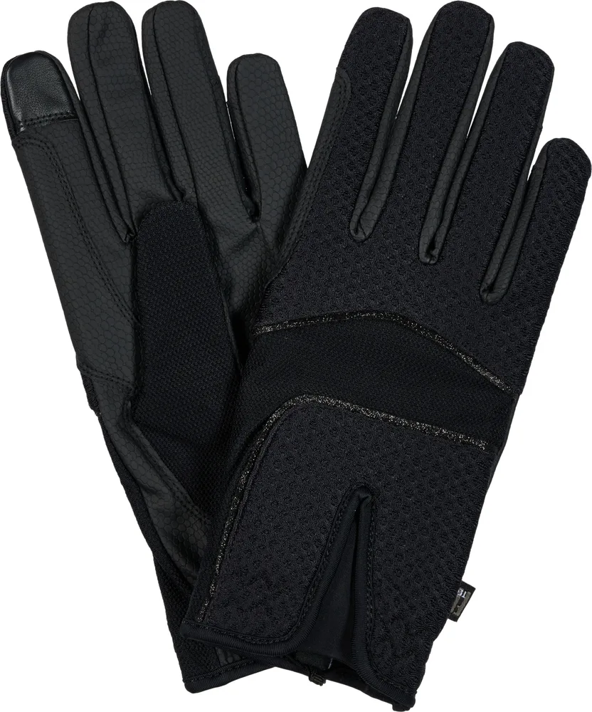 Let ridehandske med Catago FIR-Tech-teknologi. Gavnlige antiinflammatoriske og opvarmende virkninger af de keramiske partikler. Designet af en blanding af forskellige stoffer. Blød håndflade er åndbar, fleksibel og holdbar kvaliteter, der er vigtige i en sommerhandske. Dobbelte elastiske håndled med sideudskårne elastiske indsatser for ekstra fleksibilitet omkring håndleddene Dekorativ smal flad glimmerkant på bagsiden af hænderne.