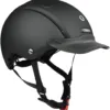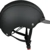 Turnier Black imponerer med sin dybe sorte farve – en allrounder til ethvert outfit og enhver disciplin. Den elegante fastholdelse gør den til den perfekte ledsager til det klassiske turneringslook. Moderne enkel ridehjelm til børn, unge og sarte kvindehoveder med plus på sikkerhed på grund af den langt sænkede bagdel og stænger. Certificeret som ride-, cykel- og skihjelm! Forbedret ventilation for forbedret luftgennemstrømning DISK FIT VARIO komfort med nem justering Forlænget bagende med fuld dækning af mikroskal