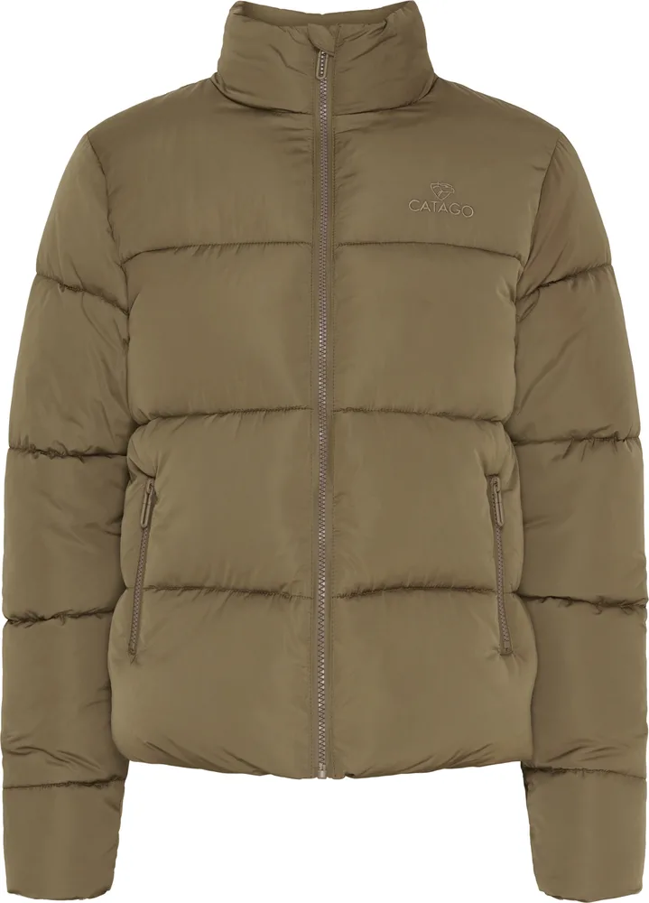 Dynejakke med høj hals Kraftigt syntetisk fyld Heldækkende printet for med Catago-logo og Catago-logobroderi på brystet. Omvendt gummibelagt lynlås foran med lynlåsgarage og gummibelagte vislonlynlåse ved lommer. Sammensætning: 100% polyester med duntæt belægning på bagsiden og vandafvisende på overfladen. For: 100% polyester fyld: 365g