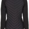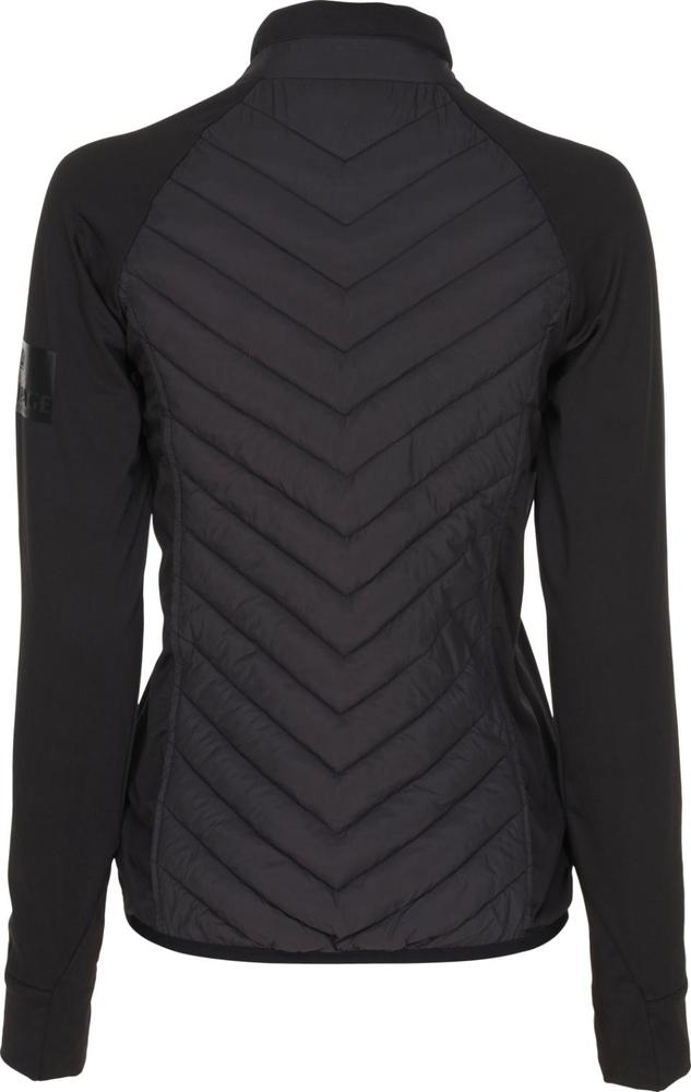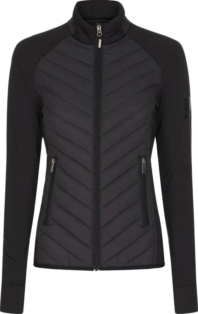 Quiltet jakke med børstede jersey ærmer og krave. Tommelfingerhuller ved ærmemanchetten. Elastisk kant nederst. Paspel sidelomme og logo udskåret i gummi ved skulderen. Vatteret stof 100% nylon. Børstet jersey 95% polyester, 5% elastan.