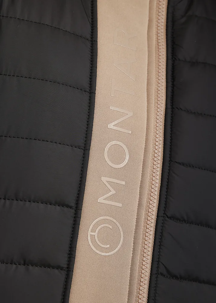 Design: Jakken har et smukt quiltet materiale både foran og bagpå, og udstråler sofistikering og elegance. Det lille Montar-logo i halsen og et lodret Montar-logo foran tilføjer subtile brandingdetaljer til denne premium-jakke.