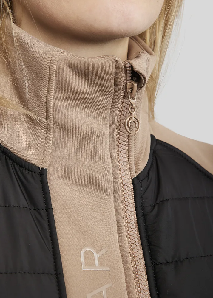 Vores bestseller Emma er indbegrebet af stil og funktionalitet inden for rideovertøj. Jakken er designet til både at arbejde i stalden og ridning, Materialet: er fremstillet af 100 % polyamid og softshell-materiale. Kvaliteten er smuds- og vandafvisende og det sikrer, at du forbliver tør og komfortabel selv under uforudsigelige vejrforhold. Materialets fugttransporterende egenskaber holder dig kølig og tør under intense aktiviteter. Design: Jakken har et smukt quiltet materiale både foran og bagpå, og udstråler sofistikering og elegance. Det lille Montar-logo i halsen og et lodret Montar-logo foran tilføjer subtile brandingdetaljer til denne premium-jakke. Funktionalitet: Jakken er udstyret med en tone-i-tone lynlås foran og to lynlåslommer, der gør det nemt og praktisk at opbevare din smartphone, kort og nøgler. Softshell-ærmerne giver en behagelig følelse og en perfekt formet pasform, hvilket giver optimal bevægelsesfrihed i sadlen. Let, vindtæt og med et skinnende premium-look er Emma jakken det perfekte valg til ryttere, der kræver både stil og ydeevne. Denne jakke er designet til at passe smukt, forbedre din silhuet og løfte dit overordnede look.
